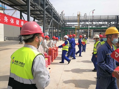 近日,陕建集团党委常委、董事,延长化建党委书记高建成,延长化建董事、党委副书记符杰平,延长化建总经理康宇麟,延长化建总法律顾问郑发龙一行,来到开云·电子(中国)官方网站总承包项目榆能化一期填平补齐工程现场,进行了暑期慰问和视察。