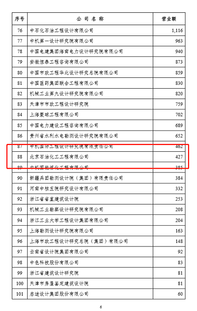 我公司自2008年参加此项评比以来,已连续多次跻身全国百名排序名单之中。2020年我公司再次进入百名排序名单中并呈现出良好的上升态势,充分体现了我公司在项目管理能力、总承包管理能力两方面在国内大型工程公司的地位,也彰显出了公司综合实力稳步提升的态势,对我公司创建国内一流工程公司具有深远的意义。