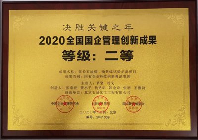 近日,第五届国企管理年会在北京举行,由公司申报的“延长石油煤-油共炼试验示范项目”获得“国有企业科技创新典范案例”二等奖。