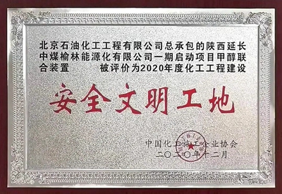 近日,从中国化工施工企业协会传来喜讯,由公司总承包的榆能化一期启动项目填平补齐工程甲醇联合装置2线和40万吨/年聚丙烯装置被授予“2020年度化工工程建设安全文明工地”称号。