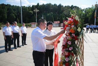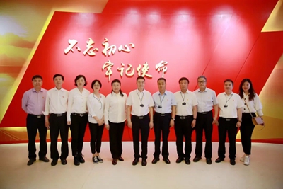 参观结束后,全体人员来到五大书记铜像前,庄严肃立,奏唱国歌。公司党委书记、董事长许缄涛,党委副书记、总经理田伟共同向五大书记雕像敬献花篮并行鞠躬礼。在田伟带领下,大家面向党旗,重温入党誓词,一同感受毛泽东等老一辈革命家胸怀天下、一心为民的家国情怀。
