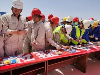 启动仪式上,公司总经理助理田平汉在讲话中强调,一是要重视开展安全生产月活动对安全生产工作的促进作用,全力维护项目安全稳定,为建党100周年营造良好安全环境;二是要以“安全生产月”活动为契机,推动榆神乙醇项目的安全生产工作;三是要团结一致、凝心聚力扎实推进安全生产工作,确保实现全年安全生产目标;四是总包、施工分包商要各尽其责,重视安全、绿色、文明施工,做好现场环境保持。随后,田平汉带领与会的170多名总包、施工单位员工代表进行了安全宣誓,“我一定遵守安全规定,时刻注意安全,听从指挥……”,铿锵有力的宣誓声诠释着项目参建人员对安全生产工作的态度和决心。