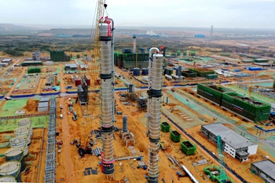 乙醇精制塔顺利封顶,为项目建设吹响了进入安装高峰期的号角,项目组将借助“百天攻坚大会战”的氛围,集团队之智慧,通过各参建单位的共同努力,高标准完成2021年年度目标,确保项目按期中交。(通讯员/黄耀辉 摄/高学峰)