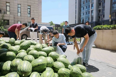 公司党委副书记、工会主席、职工董事景建民将西瓜发到员工的手里,并嘱咐大家在坚守岗位的同时,注意劳逸结合,防暑降温,增强自我保护意识。