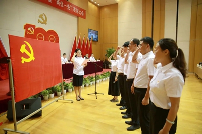 在田伟同志的带领下,预备党员高举右手,紧握拳头,庄严宣誓,立下自己对党忠诚的誓言,表达了为党的事业奋斗终身的决心和愿望。
