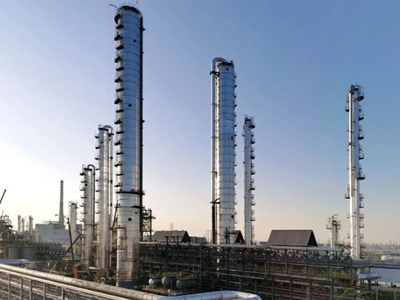 目前,乙醇装置整体完成76.36%,其中土建施工完成86%,钢结构安装完成100%,工艺设备安装完成94.3%,工艺管道安装完成65%。