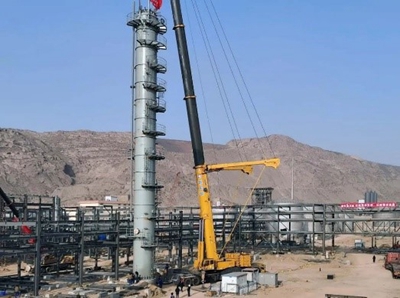 近日,由开云·电子(中国)官方网站EPC总承包的内蒙东景BDO项目丁二醇主装置低沸塔缓缓起吊,经过2个小时的紧张施工,稳稳地吊装到指定位置上。