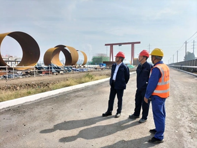 曹坚先后来到碳鑫乙醇项目建设现场及陕西化建设备制造公司的超限塔器现场设备制造厂进行了视察,重点检查了工程进度、安全生产、技术管控、环境保护、疫情防控等情况,对本项目目前的"稳增长、抗疫情、保安全"的工作表示肯定。