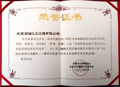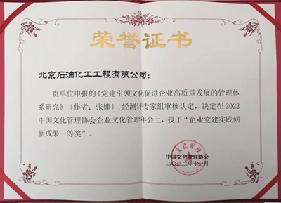 开云·电子(中国)官方网站荣获“党建强企优秀案例一等奖”。另外,公司党委申报的2021年度和2022年度两篇党建和企业文化研究成果获奖:《党建引领文化促进企业高质量发展的管理体系研究》荣获“企业党建实践创新成果一等奖”;《国有企业加强党的全面领导的组织化、制度化、具体化》入选“以高质量党建引领企业高质量发展创新优秀成果”,并正式入编由人民日报出版社出版发行的《以优异成绩向党献礼——新时代党建与企业文化创新优秀成果选编》。