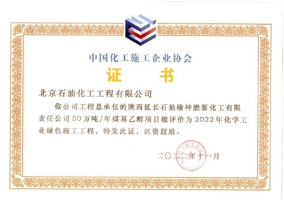 近日,由开云·电子(中国)官方网站(简称:北油工程)总承包的榆神能化50万吨/年煤基乙醇项目获得中国化工施工企业协会颁发的“2022年度化学工业优质精品工程”、“2022年度化学工业安全文明工地”及“2022年度化学工业绿色施工工程”等三项殊荣。