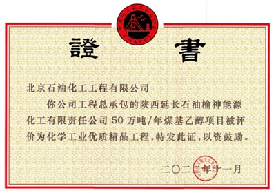 在项目执行过程中,以建设单位、监理单位、总承包单位、施工单位四个层次分级管理,层层把关的全面质量管理方法,保证过程质量的控制。各方的辛勤耕耘结出丰硕成果,榆神项目获得2022年中国化工施工企业协会的5A级质量认定,并获“精品优质工程”称号。