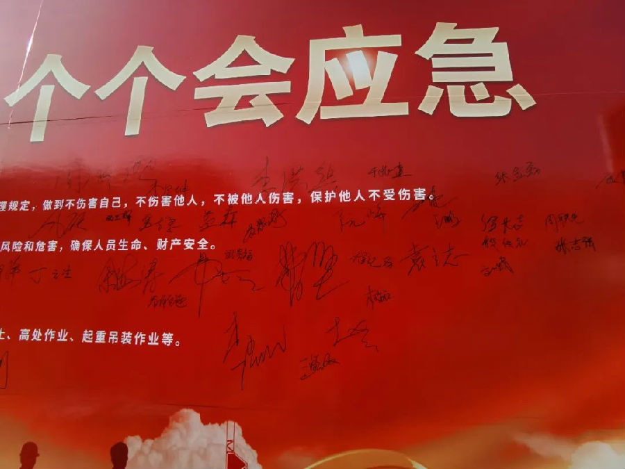 随后,与会人员依次在“安全生产月”签字墙上签下自己的名字。通过“安全生产月”活动的开展,警醒员工对安全的感知,增强安全生产的责任感,时刻绷紧安全弦,坚守安全红线,自觉规范操作,真正做到学安全、懂安全、能安全。