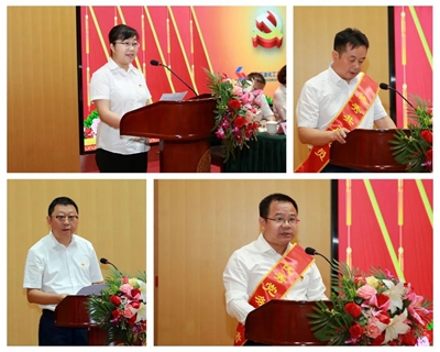 受到表彰的“两优一先”和预备党员代表分别表态发言。
