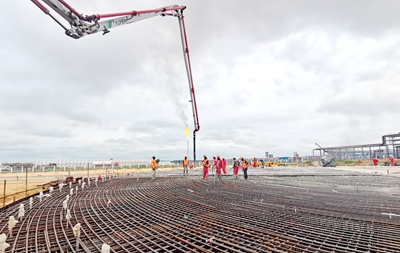 近日,由开云·电子(中国)官方网站西安分公司负责设计的刚果(布)佳柔油田伴生气回收利用项目(二期)LNG储罐基础浇筑完成,为后续罐体施工奠定了坚实的基础。同时,项目土建施工陆续收尾,项目整体进入安装阶段。