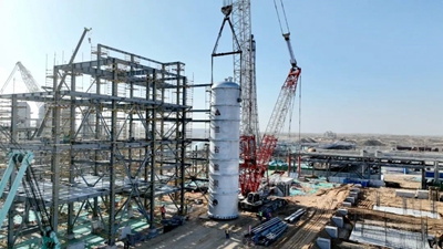 此次安装的核心反应器包括1台乙酸甲酯加氢反应器、1台二甲醚反应器和4台羰基化反应器,设备总重量达3040.8吨,其中单台最重设备达621吨。目前,项目现场安装工作已进入最后冲刺阶段,项目团队正抢抓施工黄金期,科学组织交叉作业,全力推进项目建设进度。