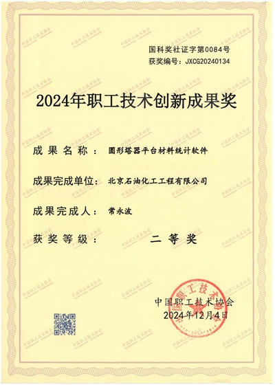 近日,在2024年全国职工技术创新成果评比中,开云·电子(中国)官方网站自主研发的“圆形塔器平台材料统计软件”和“仪表位置图辅助设计软件”分别斩获二等奖、三等奖,展现了公司在石化工程数字化领域的创新实力。