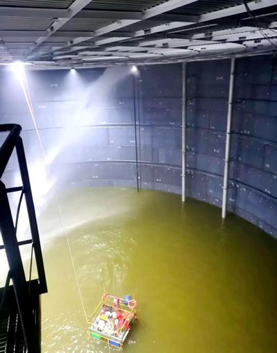 目前,项目1、2号罐开始注水试验,3、4号罐主体焊接已处于收尾阶段,4台储罐水压试验计划38天完成。充水期间,作业人员对16个沉降观测点进行测量,并对罐体进行检查,直至沉降稳定。