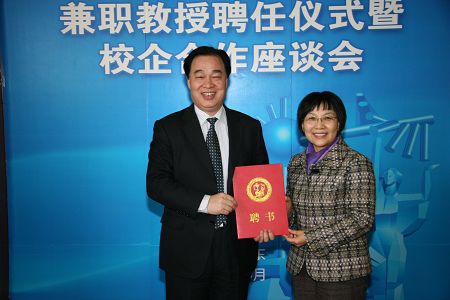 座谈会上,中国石油大学(华东)校长山红红对总经理张积耀一行的到来表示欢迎,简要介绍了学校近几年来的发展,并向张积耀总经理颁发了兼职教授聘书。